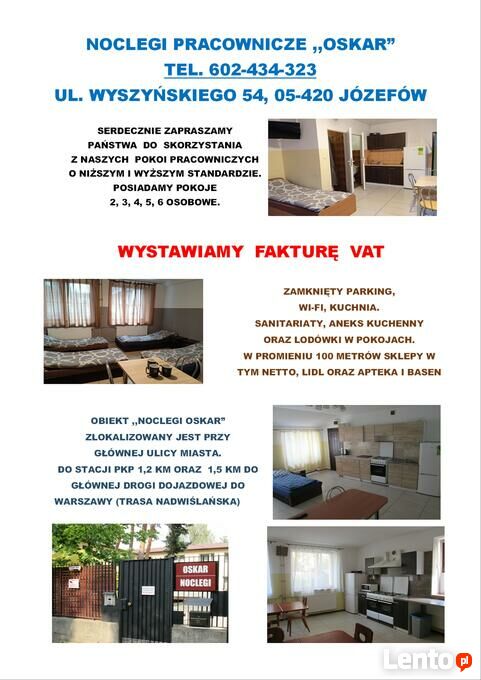 Noclegi pracownicze /FAKTURA VAT/ Józefów